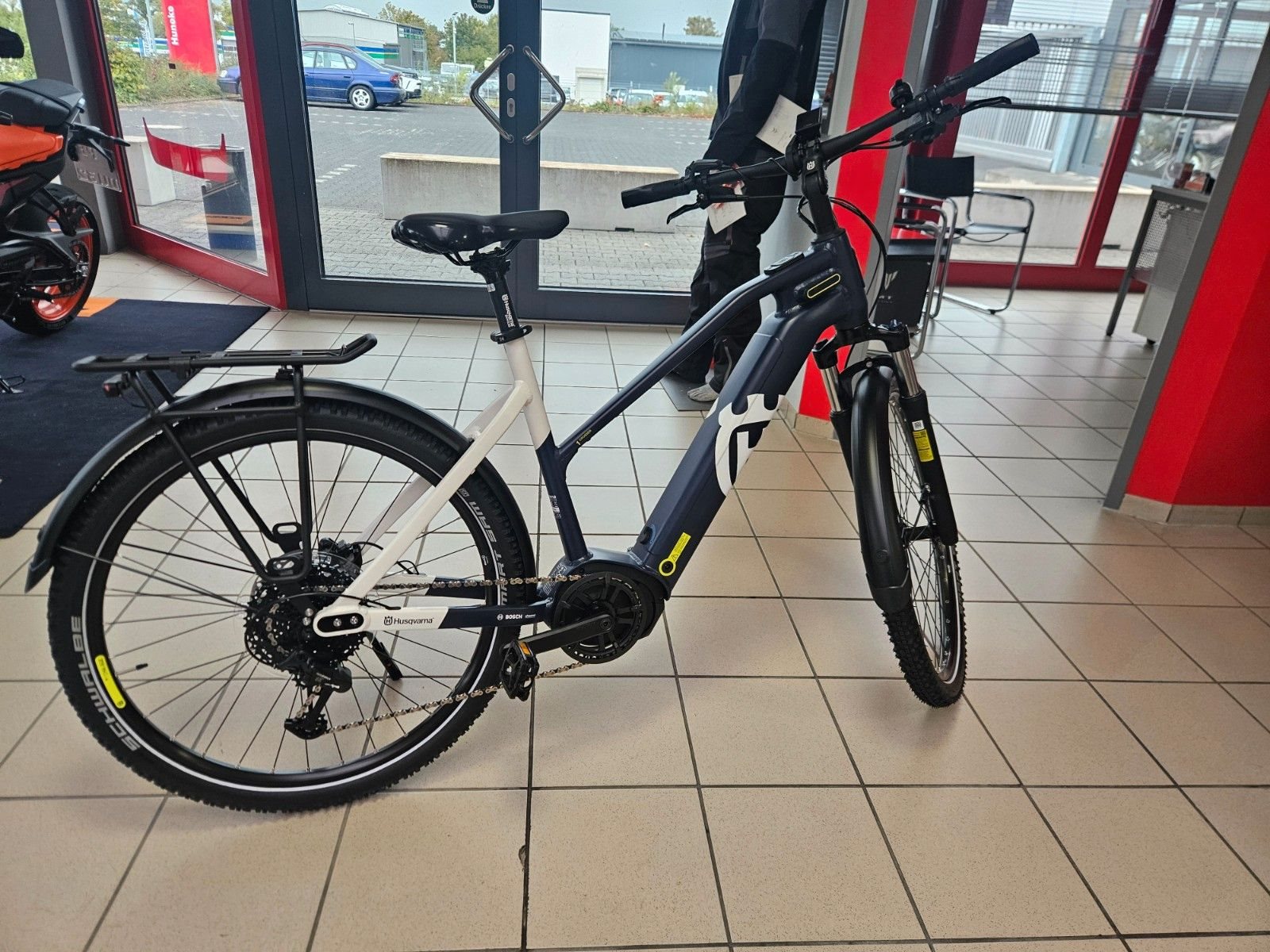 SONDERPREIS aufgrund einer RABATT AKTION : UVP des Herstellers 2799,-€ JETZT 1999,-€ Trekking E Bike von Husqvarna mit BOSCH Performance Line Motor und Bosch KIOX 300 System . GRÖSSE : L ( Navigation und Fahrdaten auch per Smartphone-App ersichtlich ) .