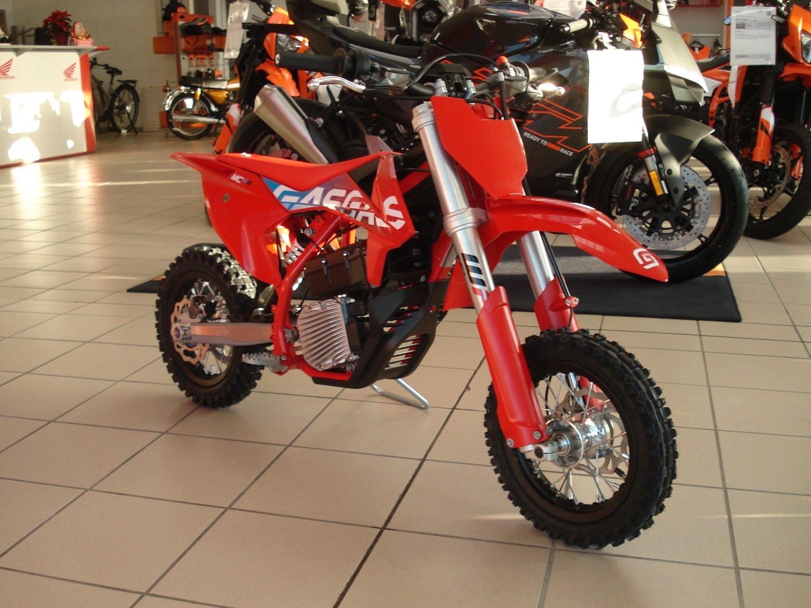 Neu auf dem Markt: die fantastische MC-E 3! Das Bike ist zwar als kostengünstiger Einstieg in die Offroad-Welt gedacht, aber es wurde mit derselben Leidenschaft und denselben Qualitätsbauteilen wie alle GASGAS-Bikes konstruiert. Dieser leichte, batteriebetriebene Dirt-Shredder lässt sich dank sechs verschiedenen Leistungsmodi und einstellbarer Sitzhöhe leicht fahren und anpassen und verleiht allen jungen Fahrern Selbstvertrauen, wenn sie die Grundlagen des Motocross erlernen. Das Bike erzeugt fast keine Geräusche und absolut keine Kohlendioxid-Emissionen: So ist Spaß garantiert, ohne dass sich die Nachbarn beschweren! Die MC-E 3 ist einfach gut! Dieses vollwertige Offroad-Bike ist darauf ausgelegt, der nächsten Generation an Rennsport-Talenten ebenso wie Nachwuchsfahrern, die einfach nur Spaß mit ihren Freunden haben möchten, einen spaßigen Start in das Motorradfahren zu ermöglichen. Mit einem starken und robusten Rahmen, hochwertiger WP-Federung und einer langen Liste hochwertiger Bauteile ist die GASGAS MC-E 3 das beste Bike für den Einstieg in die Offroad-Welt. Der Rahmen der MC-E 3 ist auch bei höherer Geschwindigkeit stabil, ermöglicht einfaches Kurvenfahren und wurde von unseren Ingenieuren darauf ausgelegt, jungen Fahrern volle Kontrolle zu geben. Aus Chrom-Molybdän-Stahl konstruiert ist er stark, leicht und mit einer coolen und haltbaren roten GASGAS-Pulverbeschichtung versehen.